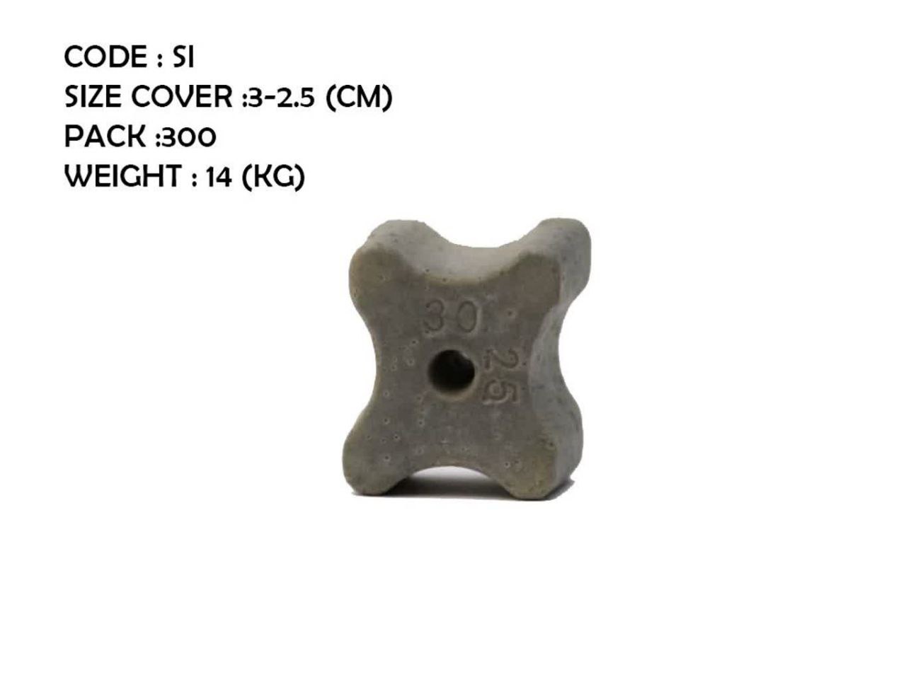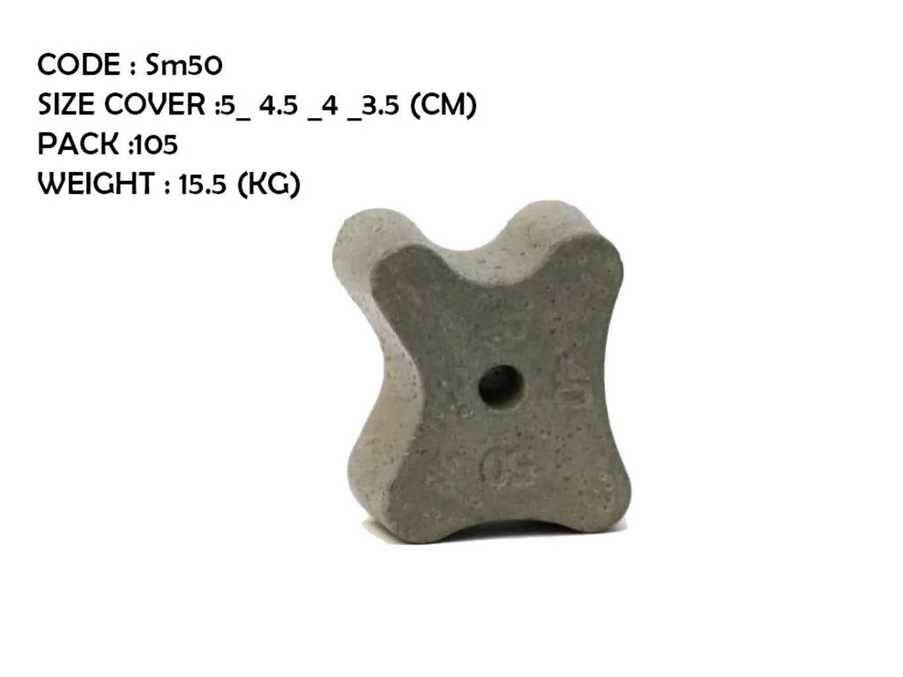 اسپیسر بتنی یک قطعه از جنس بتن یا مصالح مشابه است که برای حفظ فاصله صحیح بین میلگردها و سطح بتن استفاده میشود. وظیفه آن جلوگیری از زنگزدگی میلگردها و افزایش کیفیت و مقاومت سازه بتنی است.